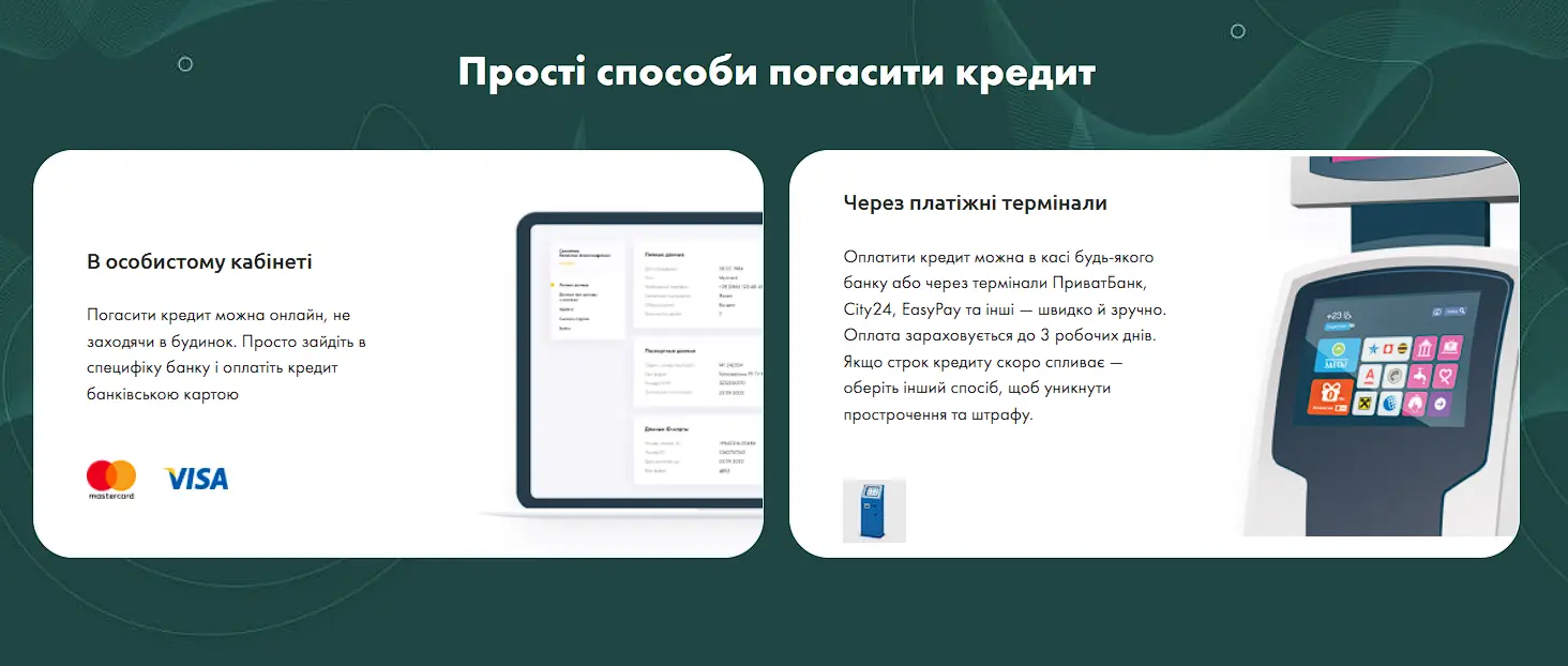- час розгляду онлайн-заявки – 15 хвилин для нових клієнтів та 5-10 хв. для постійних;