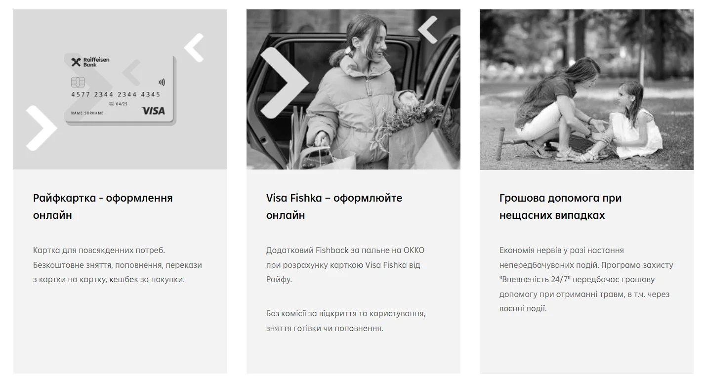 Райффайзен вже підібрав для Вас готове рішення з турботою про Ваш бюджет. Це найпопулярніший набір послуг: