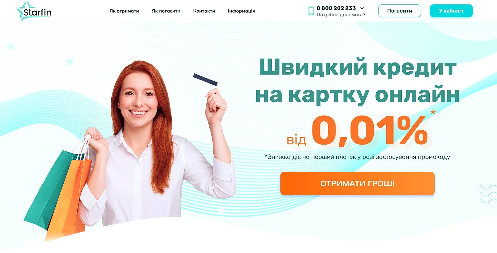 - Сервіс Starfin працює 24/7 без вихідних та святкових днів. У будь-який зручний час позичальник може зайти на сайт та подати заявку на кредит онлайн.
