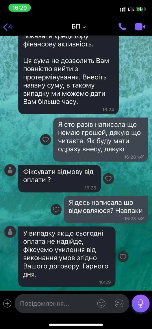 Люди чи всім вони таке пишуть? Що робити в такому випадку? Я не відмовляюся, просто немаю змоги внести цю оплату. Кредит Бізнес Позика. Внесла 500 гривень вчора , все що було щоб вони мені дали більше часу, а сьогодні знову та сама шарманка. Що буде як вони зафіксують цю відмову від оплати? Суд?
